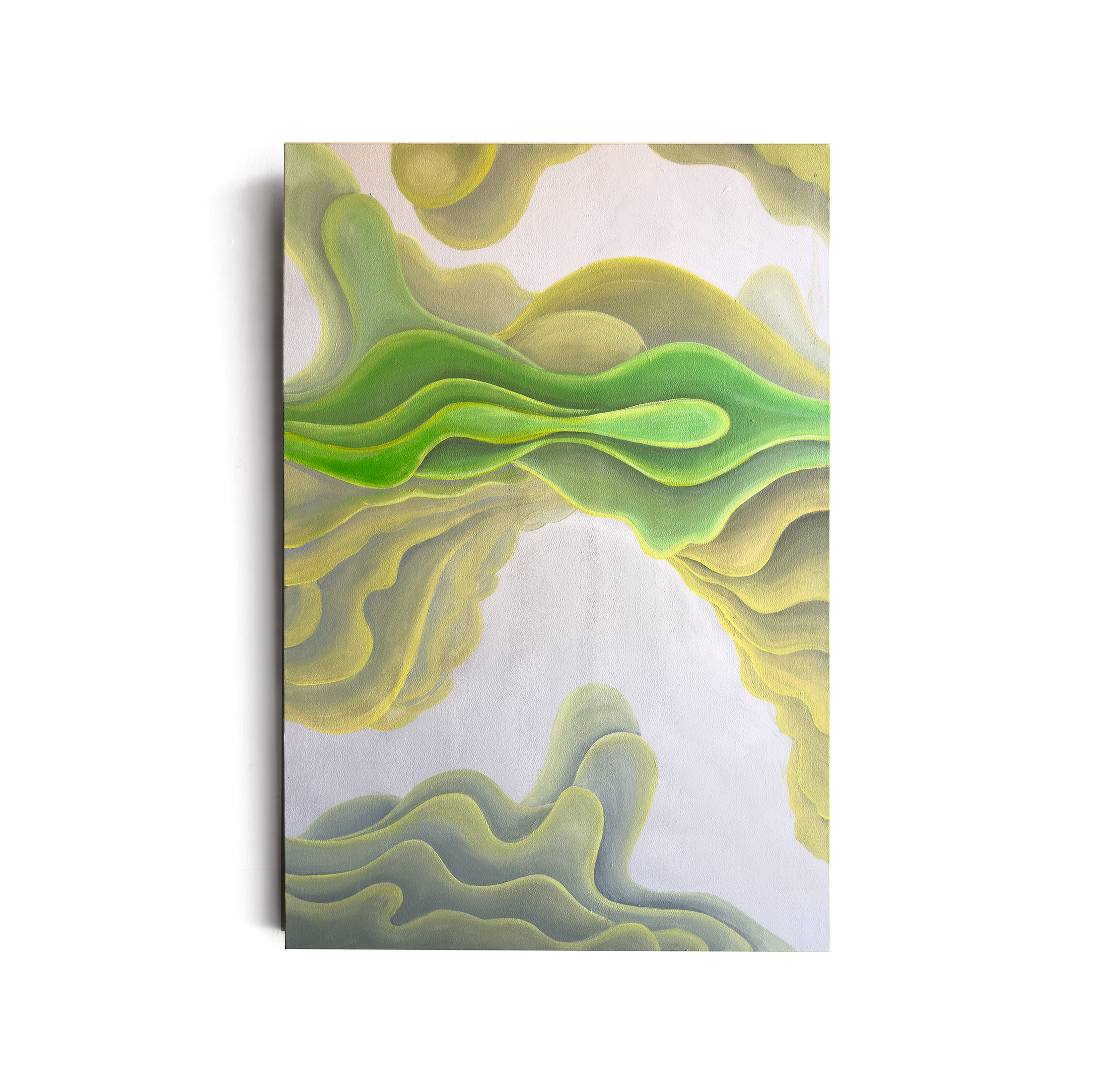 His practice centers on synthetic textiles, internal structural systems, and the physical translation of weight and compression into sculptural form.